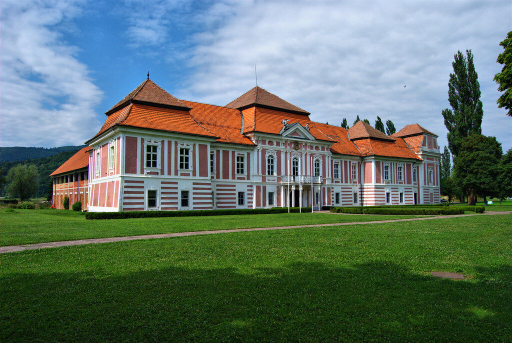 Dvorec krasi izredno skladna arhitektura, ki se je zgledovala po tedaj na Dunaju modnem poznobaročnem florentinskem slogu, katero je dvorec dobil leta 1784.